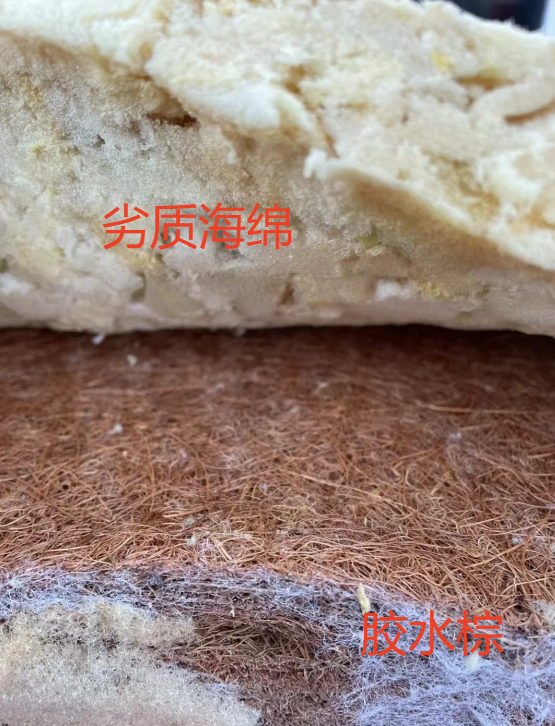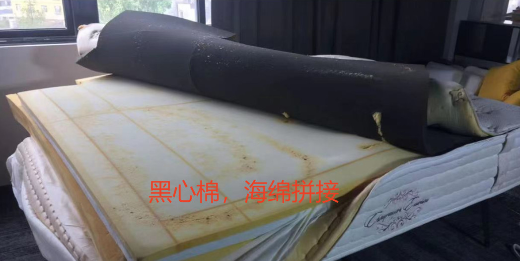 - 乳胶层不到1cm,还混了泡沫,贴皮用的是工业胶;
