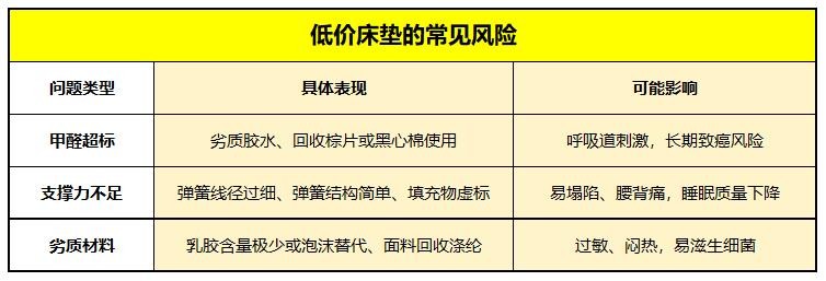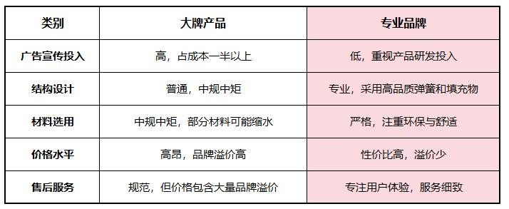 - 弹簧结构设计普通,甚至部分靠厚泡沫"堆起来"卖高价。