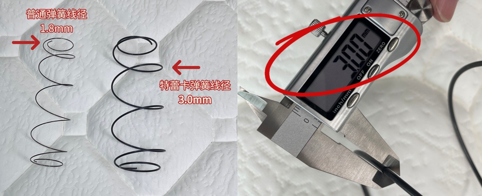 很多床垫容易塌陷、发出异响,其实跟弹簧设计关系很大。像那种弹簧太细、密度太高的,支撑力不够,时间久了就容易塌,其他参数不变的情况下,建议使用稍粗的弹簧线径,支撑力会更好。