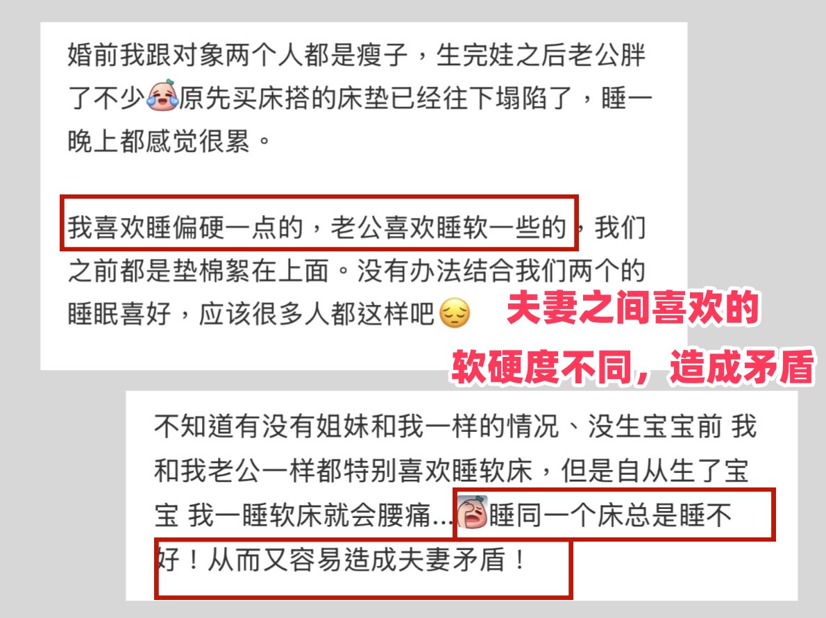 这些差异化需求,靠一张固定软硬度的床垫根本无法兼顾,这也是很多家庭买床后频繁后悔的关键。
