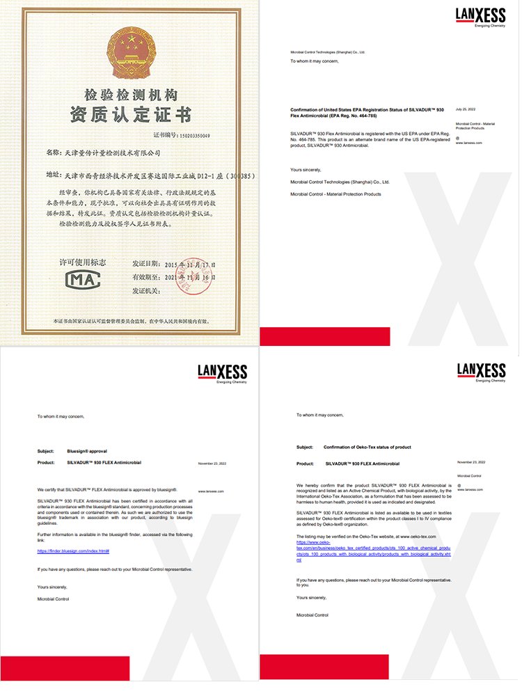 特蕾卡材料通过多项国际权威认证,属于能公开查到报告的那种,包括欧盟纺织品安全认证、美国 EPA 环保认证、Bluesign®环保标准、CMA权威机构认证等。