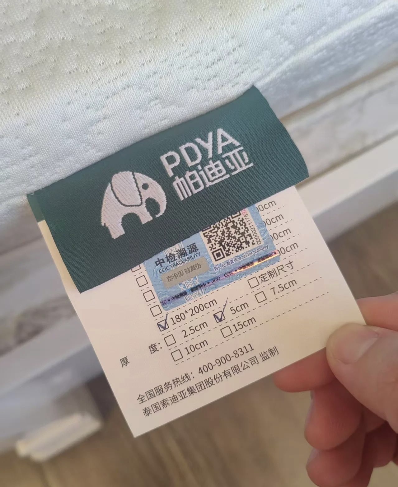 帕迪亚每一张乳胶床垫上面都有溯源码,消费者扫码就能查到产地、生产批次、海关记录等。